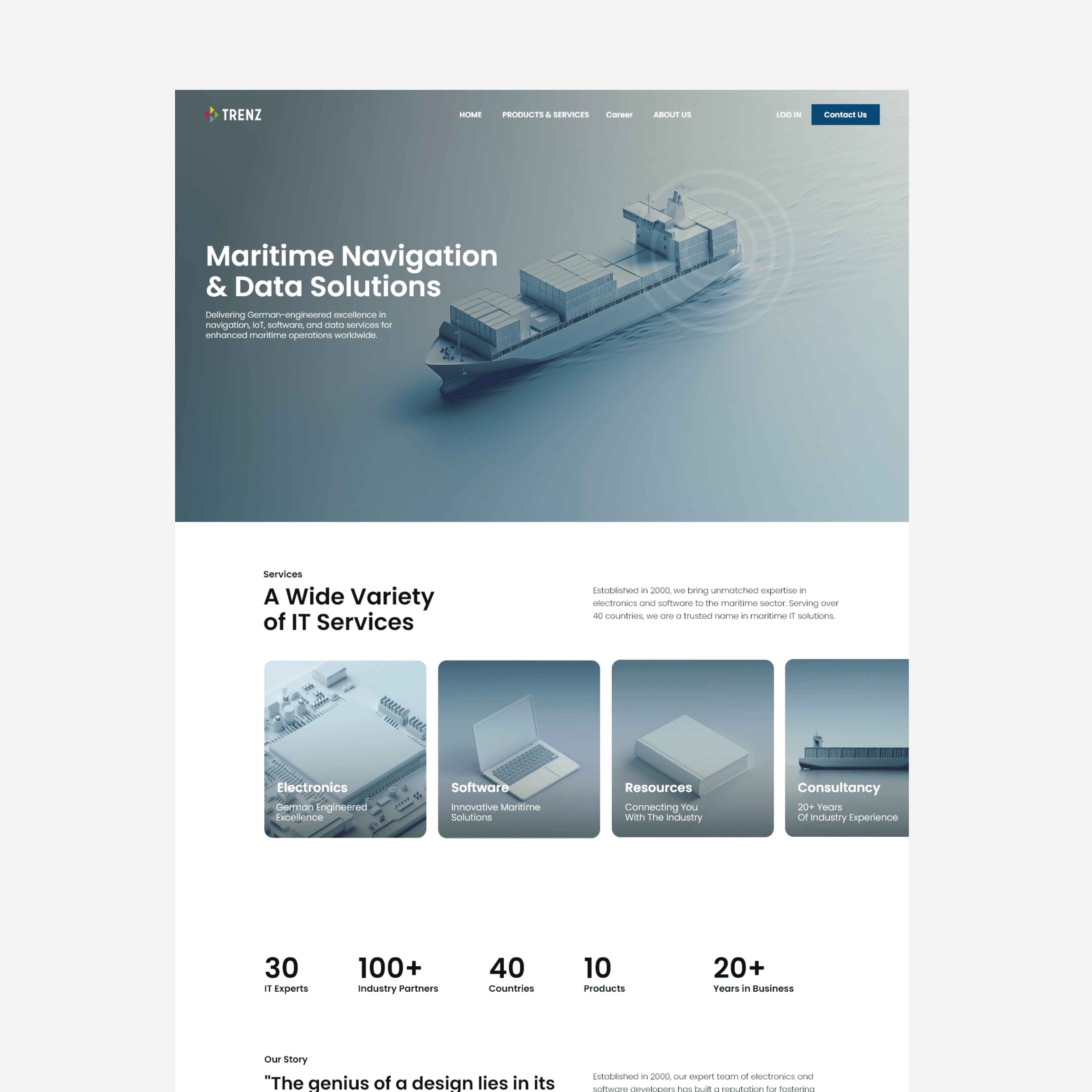 What began as a short collaboration with TRENZ gradually evolved into a full rebranding process. Inspired by the high-quality 3d visualization of their Portable Pilot Units (PPUs)—specialized navigation devices used by maritime pilots to guide vessels safely in and out of ports—TRENZ saw an opportunity to elevate their branding to better match the innovation of their products.